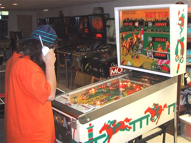 If you haven't been able to tell yet after browsing around my site, my collecting centers around older Williams Solid State games. I remember playing Hot Tip when it first came out and getting a kick out of the little jingle it played on the chimes when you hit the start button. I had been searching for one for almost 2 years, and did buy one in late 2001, but it needed enough parts that I decided to search for a second and "make one out of two". It took me another 9 months to find the second, but I lucked out and got one in terrific shape that will only take a small amount of work to finish up. The best part about this game is that while the ad I ran on Mr. Pinball said "will travel within 3 hours of Atlantic City", the seller was from Ohio and delivered the game while on a business trip.