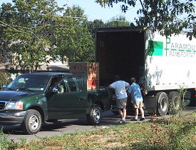 My two previous NIB purchases showed up on big 18 wheel trucks (see photo below of RCT's arrival). We would then transfer the game from the truck to the bed of my pickup, then I got to drive the game down the final 300' of the driveway to the house. No such ceremonious entry for this lord however! I received a call from my daughter while at work "hey dad, your pinball machine is here, they just dropped it off outside of the garage." While a heck of a lot easier than the ride in the back of the pickup, where is the ceremony in that? |
