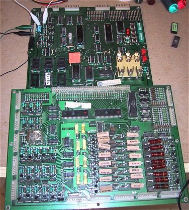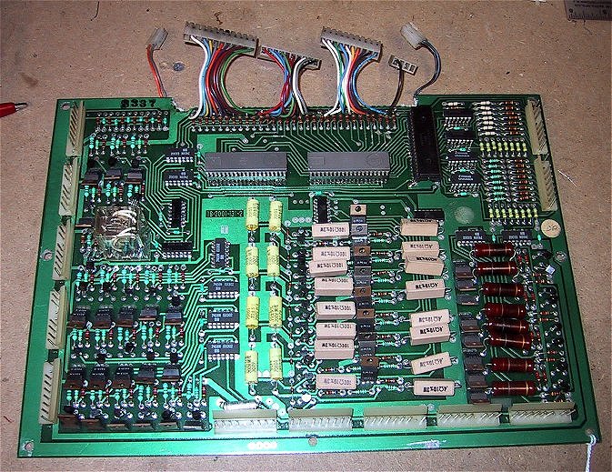 How not to repair a board! If you ever wanted to know what the term "hacked board" means then read on. I received the driver board pictured below in for repair a while back The entire interboard connector has been "nibbled" out (a job in itself) and replaced with plug connectors. The even more interesting part is that all 3 PIAs have been replaced, however the originals were cut off, the legs left in the board, and new ones soldered to the existing legs! The same was done with all 4 ICs in the switch matrix. Needless to say, I declined the repair job.