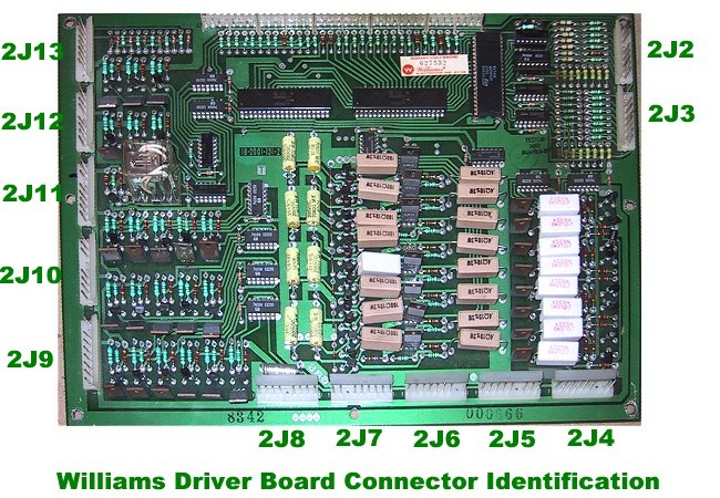 Introduction to Section 5: This section deals with testing, diagnosing and repairing problems with the Driver board in early Williams solid state games (System 3 through System 7). The Driver board controls the Solenoids, the lamps and reads the switches in the game. If your game is booting (going into attract mode), but you can't start a game, have solenoids that stick on or don't come on, lamps that don't come on or switches that don't register, then your problem is most likely driver board related. Updates: This document was initially published