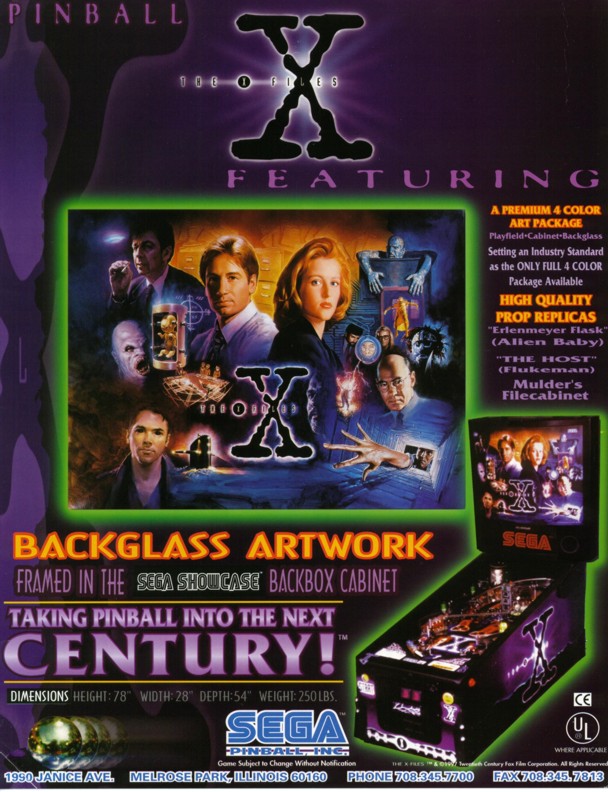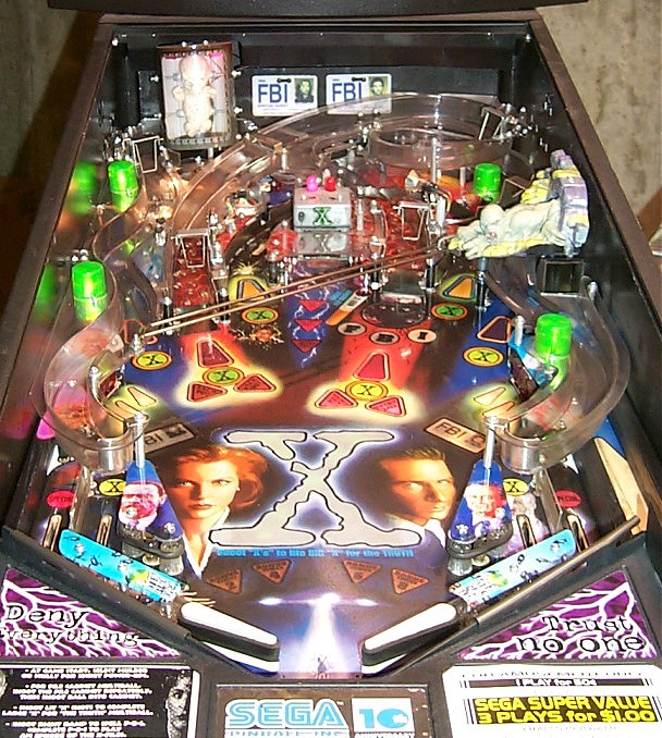I am an avid X-Files fan (until the Scully baby storyline at least...), having not missed an episode in the first 4 years of the show's run. When I finally had the room to start growing my pinball collection, X-Files was the first addition to my initial purchases (Firepower and Black Knight). It was an Ebay purchase (back when you could almost trust an Ebay pin) that I obtained from a "Family Fun Center" just north west of Pittsburgh, PA. The manager of the center wanted to get a Medieval Madness in, and the owner told him that he needed to sell off some of the other machines to finance the purchase. He was attempting to raise the cash by selling off the X-Files and a TOTAN.